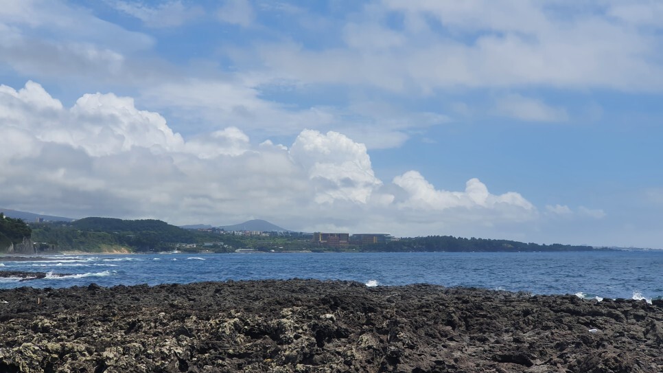 멀리 보이는 중문 관광단지. 미세먼지가 없으니까 멀리 깨끗하게 보인다.
