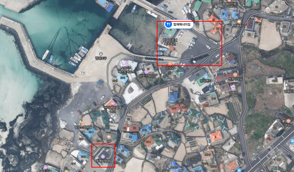 건물앞에는 딱 그냥 골목길밖에 없어서 전용 주차장이 없다. 그래서 차량이나 오토바이를 타고 올 경우에는 저기 지도에 보이는 협재해녀의집 앞 공터에 대야한다. 걸어서 한 5분 거리?