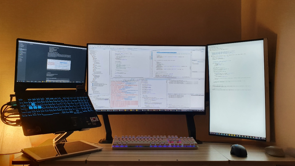 보통 나는 특별히 어디 여행갈때 들고 다니는 경우를 제외하면 이렇게 고정하고 쓴다. 그런데 최근에 문제가 발생했다.. 잠자려는데.. 절전모드가 되서 모니터랑 유선키보드 조명도 다 꺼졌는데 천장에 빛이 깜빡깜빡 거렸다..