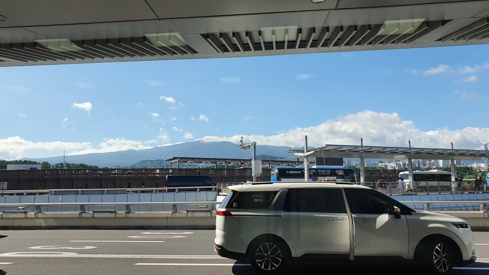 이제 집갈생각하니 모든게 후련해진다 ㅎㅎ 한라산 꼭대기엔 구름이 걸려있었다.