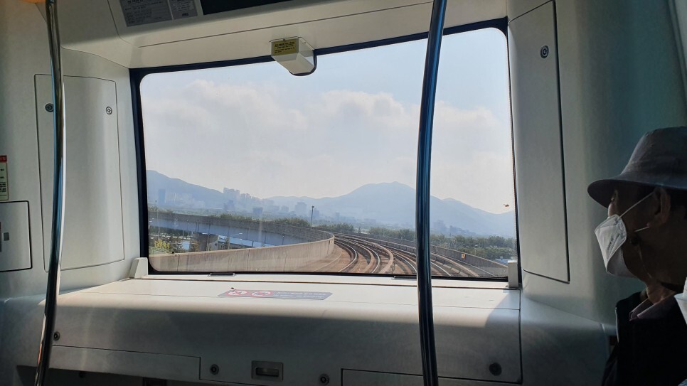 맨 앞칸에 탔는데 기관사가 없다..! 무인으로 운영되는 건가..