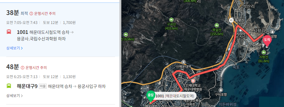 해운대역에서 나오자마자 중앙도로에있는 정류장에서 타면 된다. 1001번이나 해운대구9 번이 지나다니는데 나는 1001번이 바로와서 탔다.