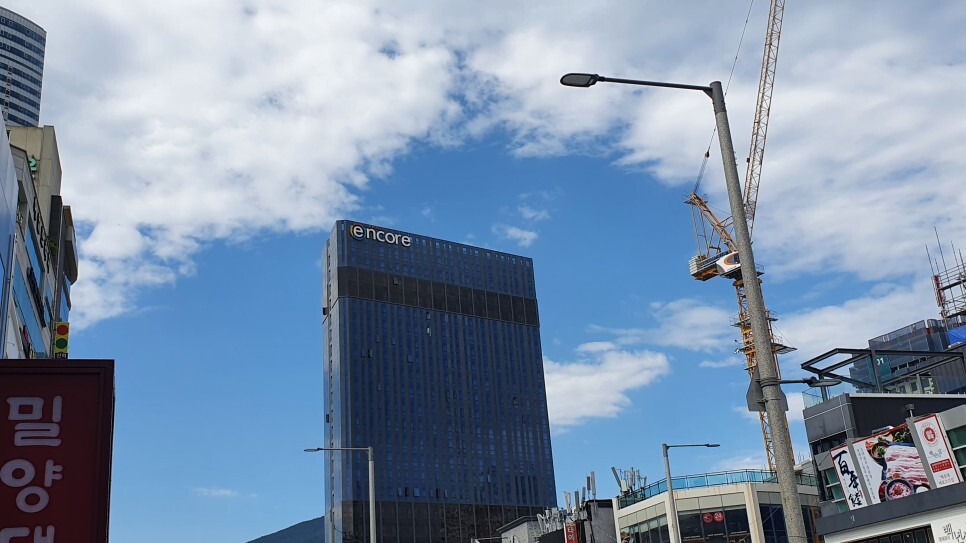 저기 멀리 중간에 보이는 밋밋한 건물리 엠버서더 호텔이다. 해운대 바로 앞에 있어서 위치는 정말 좋다