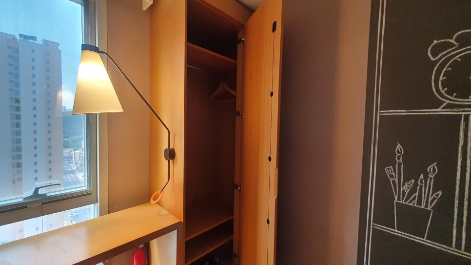 옷장도 있고 좌측에 스탠드는 신기하게생겼다 아래쪽 원형 고리는 어디다 쓰느걸까