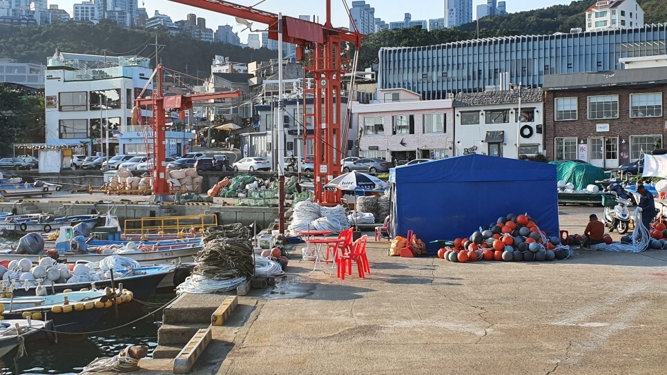 해운대 해변 끝에서 달맞이길 가는 길쪽쯤으로 오면 미포 방파제가있고 작은 고깃배들을 볼 수 있다.