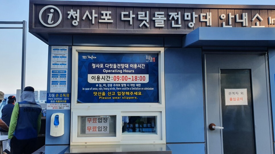 대신 들어갈때 이런 덫신을 신고들어가야한다. 왜냐면 다리에 유리구간이 있는데 여기 흠집내지 않기 위함인 것 같다.
