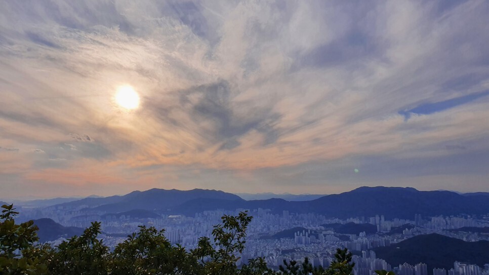 이때부터 애매했다. 하늘은 좀 어두워졌는데.. 일몰은 언제.? 근데 여기 지금 등산객도 나밖에 없고 ㅋㅋㅋ 해지고 내려가면 ㄹㅇ 무방비상태로 야간 하행을 해야하는데 ㅋㅋㅋ 심지어 대천공원 코스로 가려면 엄청 걸어야하는데.. 버틸까? 지금 내려갈까? 고민하다가 내려가면서 보기로 했다 ...^_^