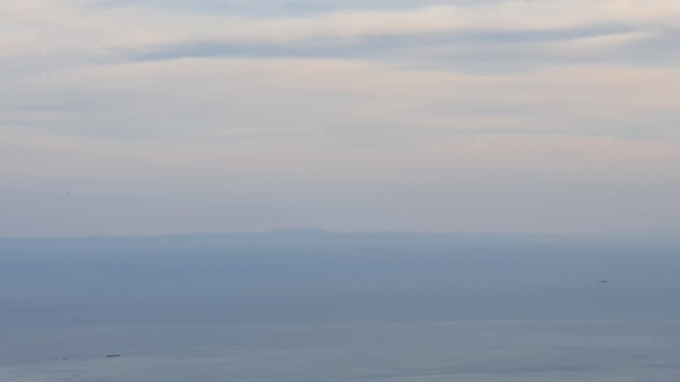 저 가운에 살짝 튀어나온게 대마도다. 확실히 땅에서 봤을때보다 좀 볼륨감 있게 보이는거같다.