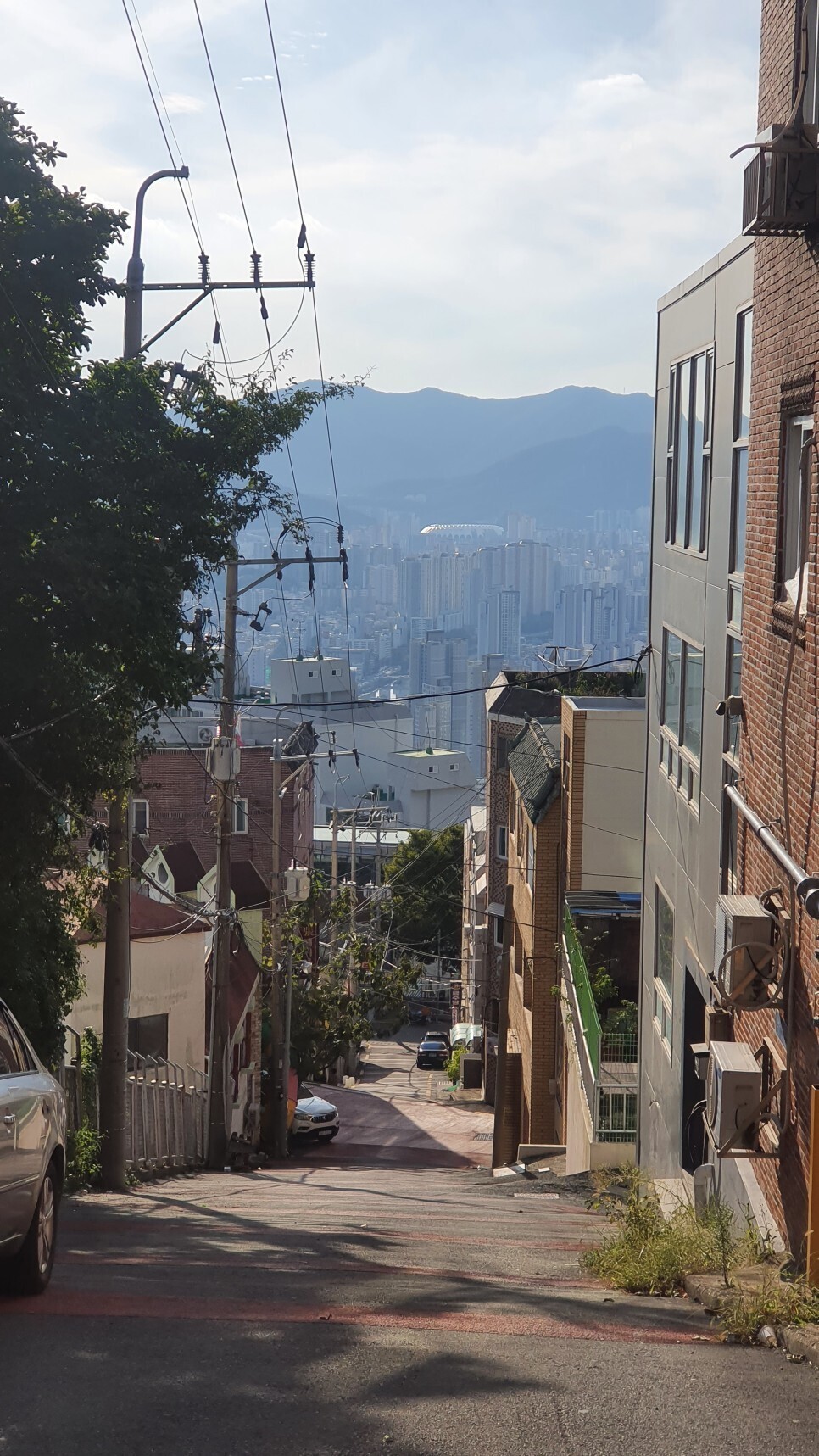 그린타워 아파트에 도착해서 우측을 보면 옆에 글로리아파트가있고 내려가는 길이 보인다. 그렇다. 여기가 재송동에서 제일 높은 위치까지 왔단거다.