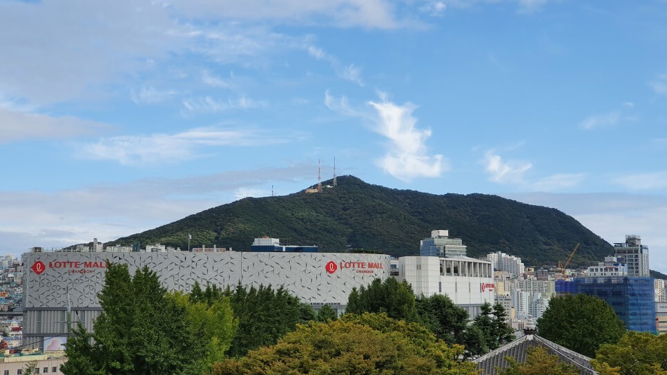 갑자기.. 롯데타워가.!? 뒤에는 황령산 봉수대가 보인다. 이따가...저길 가야한다 ㅋㅋ..