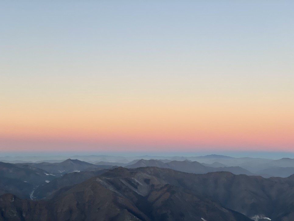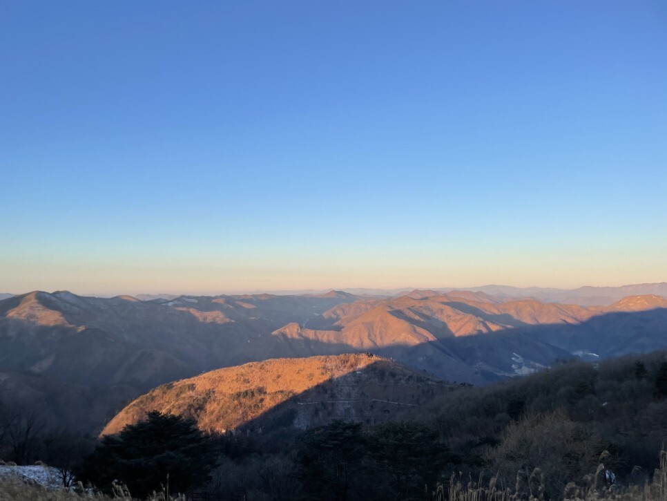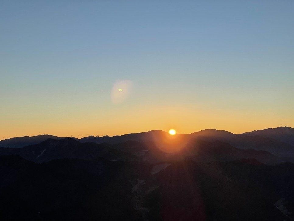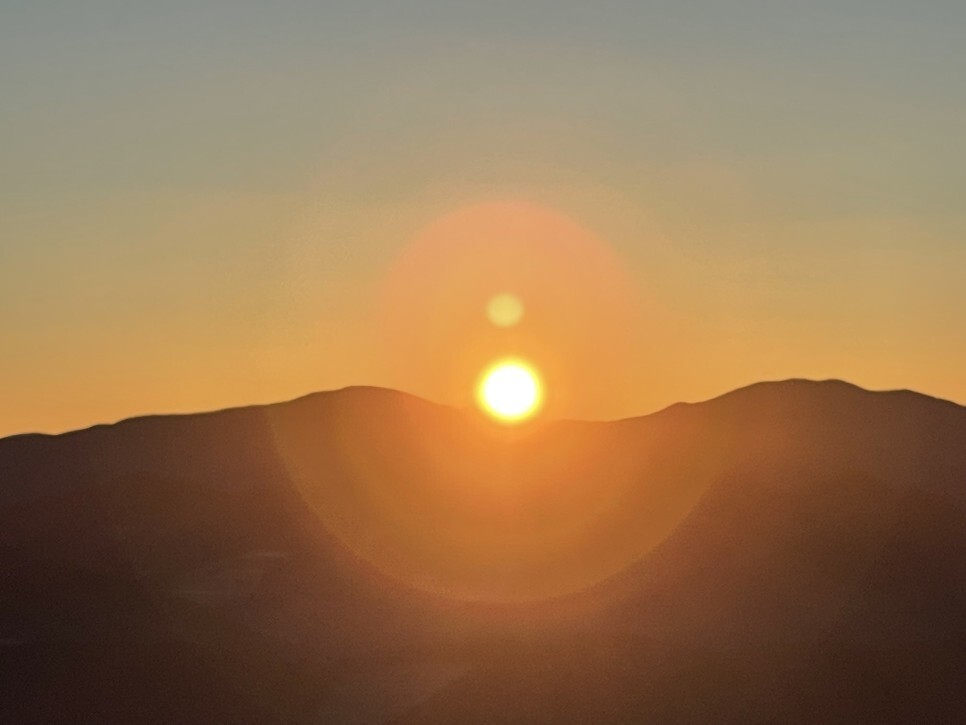 우오오 태양이 올라오니 산에 햇빛을 뿌려주는데 아주 멋있었다.