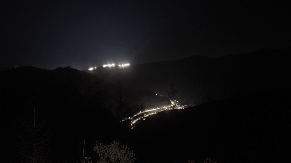 한 40 분 올라오니 벌써 이정도 높이였다. 저 아래 불빛은 도로의 가로등이다.