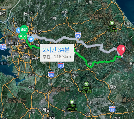 서울에서 민둥산까지 약 3시간이 걸렸다.. ㅋㅋ 예상에 두시간 반 나와서 더 빨리 도착할 줄 알았는데 .. 은근 멀었다. 야간에 여기 가로등도 없고 해서 조심하면서 오다보니 꽤나 늦었다.