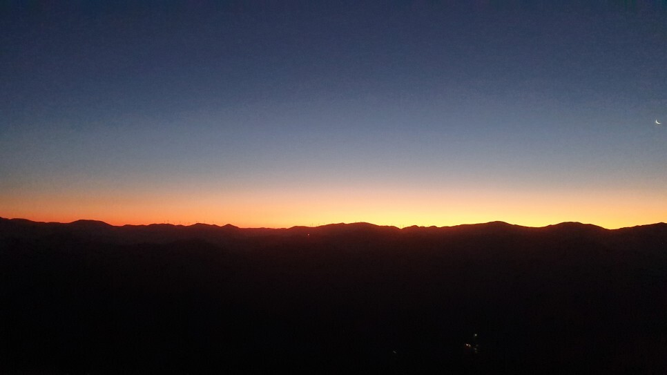 달빛아래로 붉은 여명이 올라오고 있었다. 얼른 해뜨기전에 정상에 가야해..!