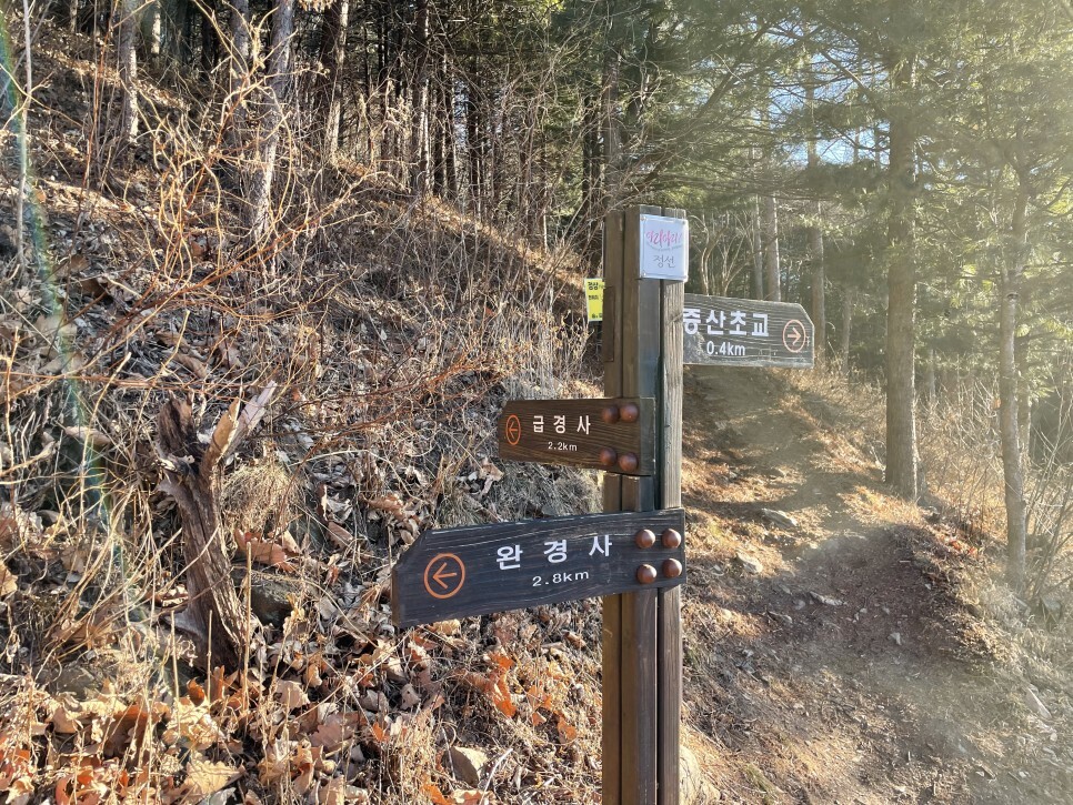 처음 봤던 완경사 코스와 급경사코스 분기점..! 정상까지 약 3km 거리였구나.