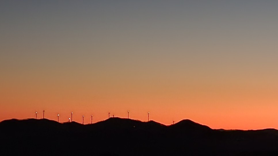 요기는 동쪽인데 하늘이 오묘하게 파랗고 분홍색으로 물든게 이뻤다.