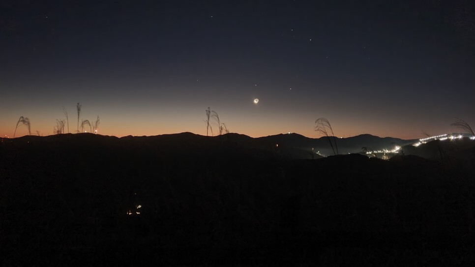 민둥산 주변에 그래도 은근 가로등도 있고, 건물들도 있어서 광해가 있는데도 별 사진이 이정도나 찍혔다. 참고로 폰카메라로 찍은 사진이다.