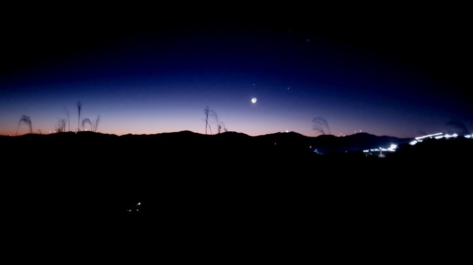 한시간 10분 정도 올라오니 이제 동쪽이 보이는 능선에 도착했다. 달이 진짜 어마어마하게 크게 떠있었다. 육안으론 엄청 컸는데 폰카로는 잘 안나오는게 아쉽다..