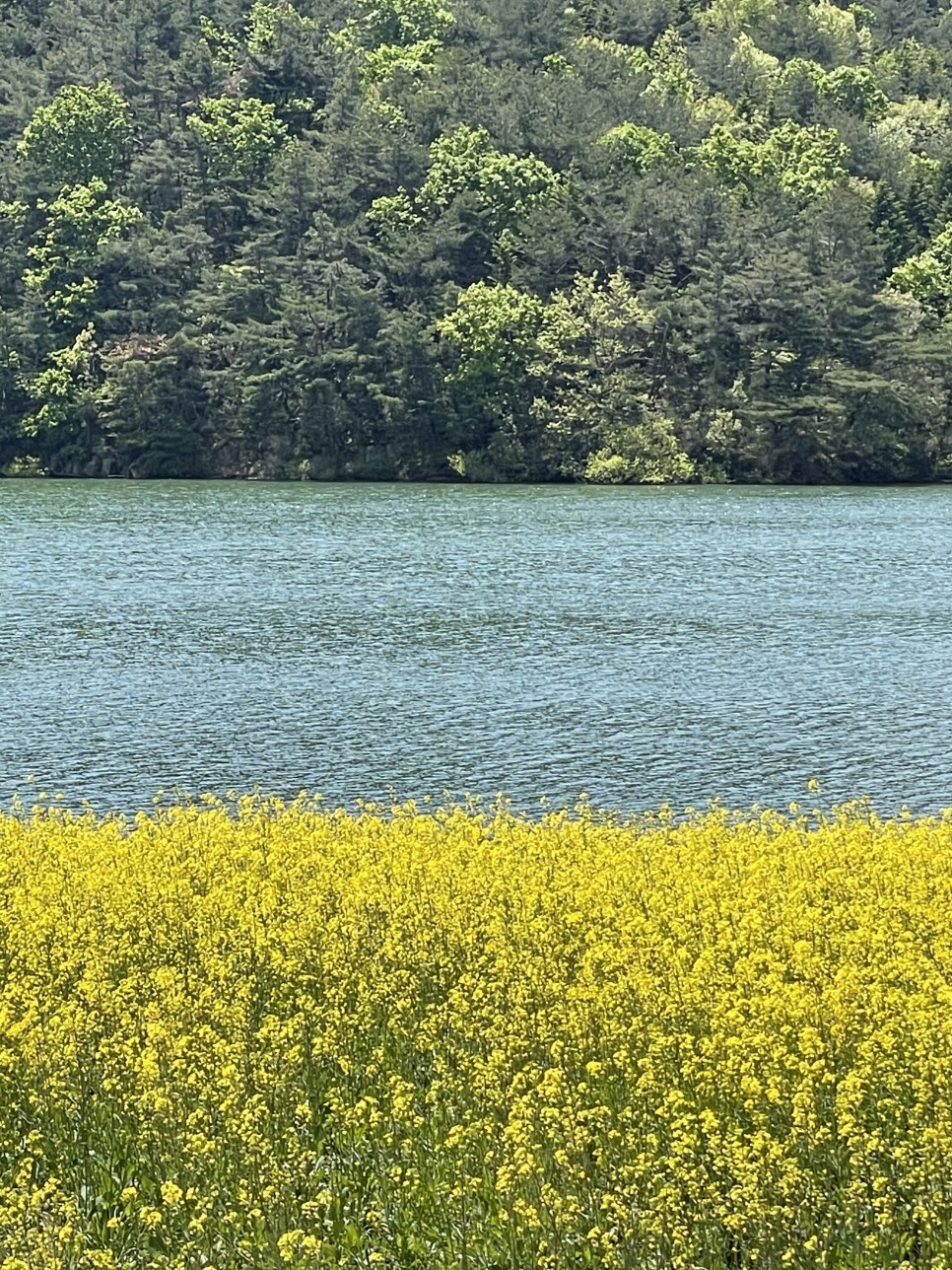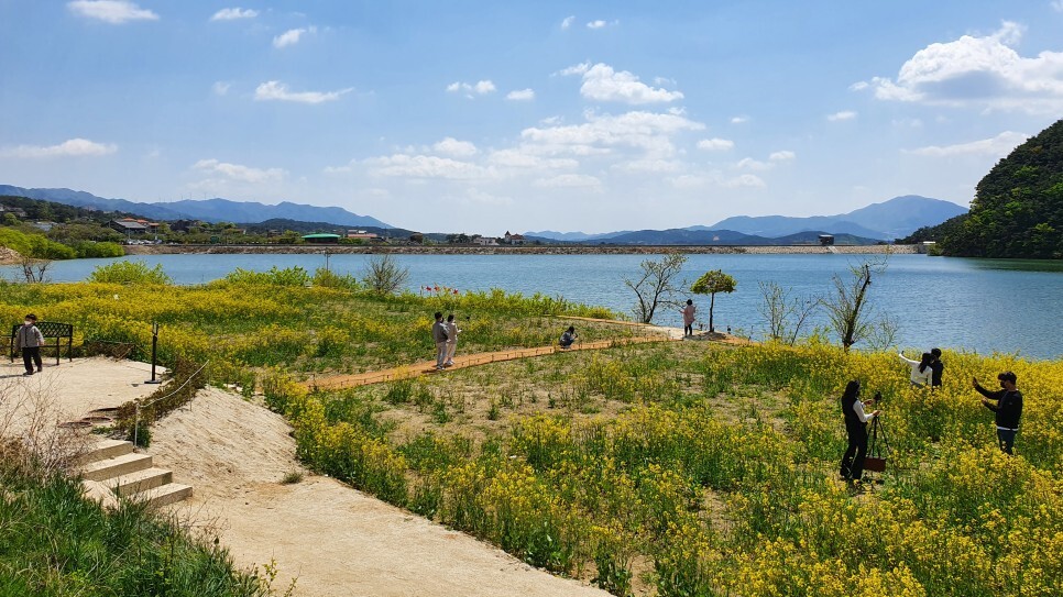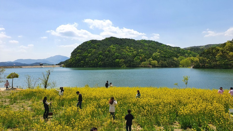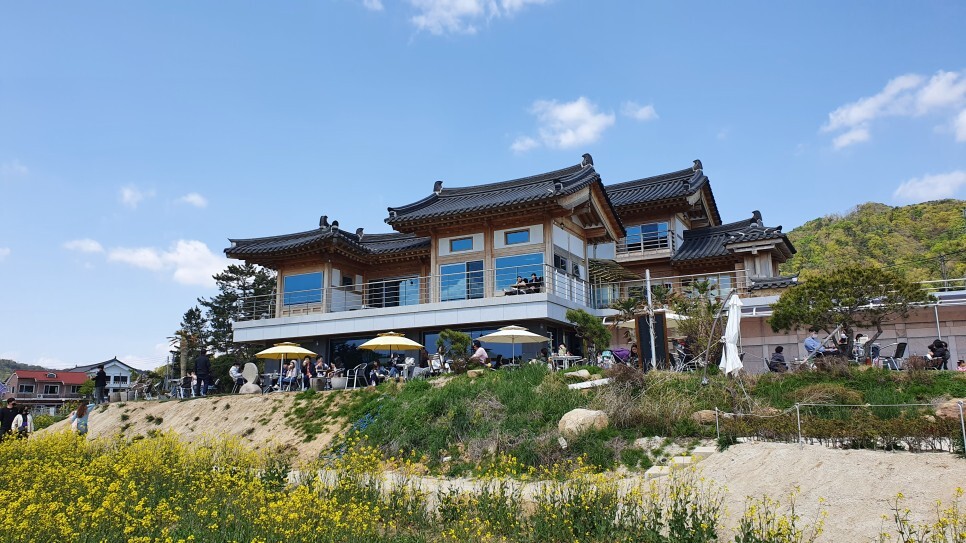 유채꽃밭이 있는것도 좋은데 앞에 푸른 호수까지 있어 카페계의 명당이지 않을까싶다.