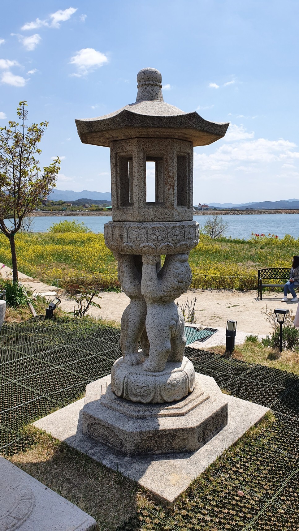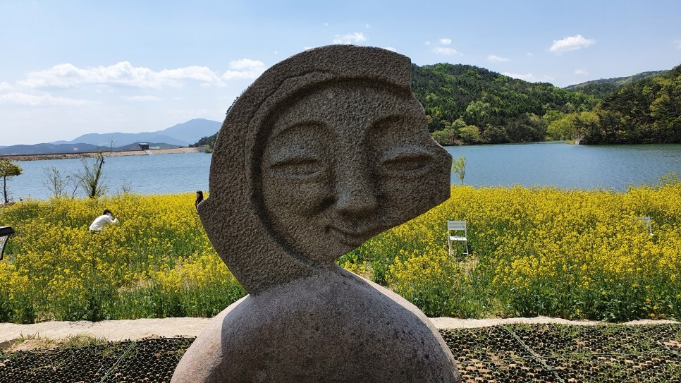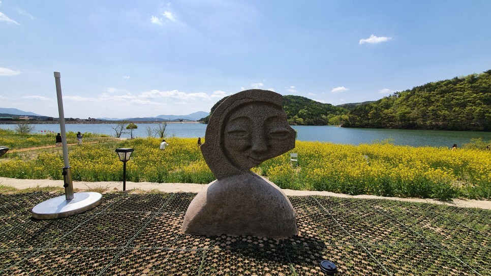 카페 바로 앞은 이렇게 유채꽃밭이 있고 경주스러운 장식품들이 많이 있다.