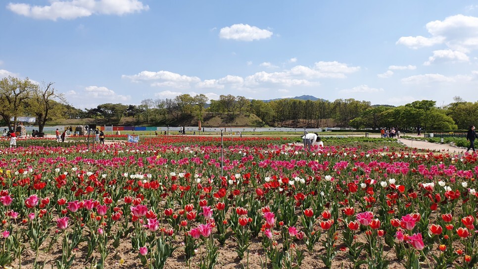 일단 첨성대 찍고 오니 꽃밭이 있다.