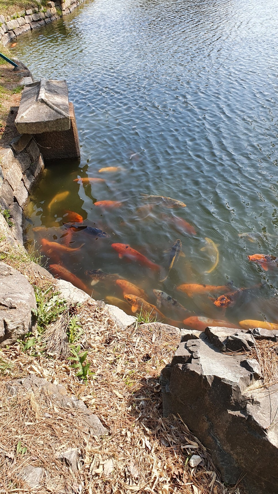 아래보니 거대한 잉어들이 살고있다.