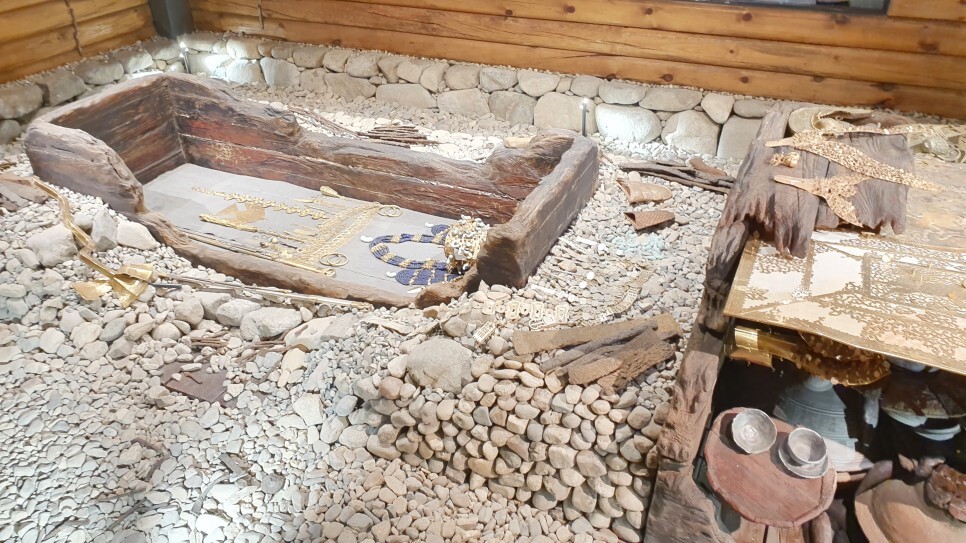 요긴 천마총..! 벽화만 있는줄 알았는데 같이 출토되었던 유물들도 함께 전시되어있었다.