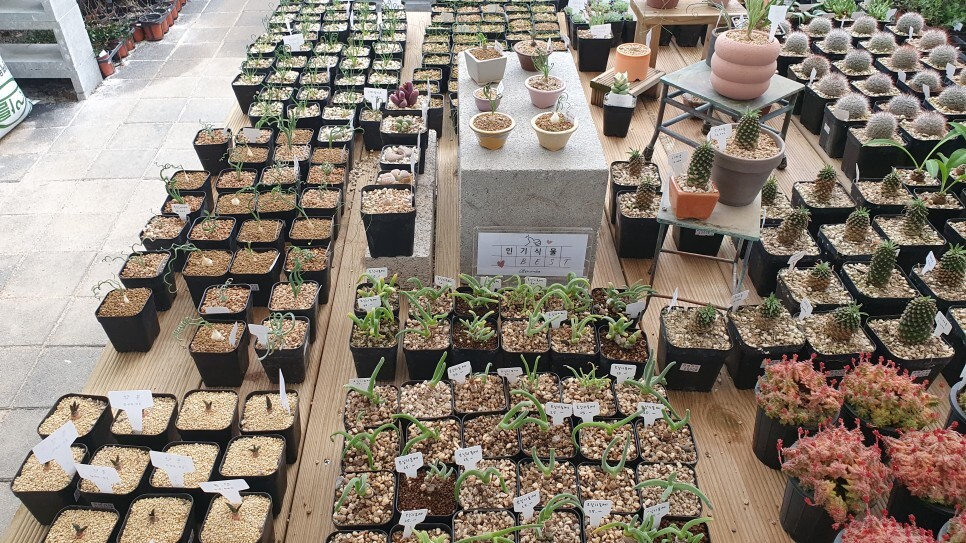 저렇게 쭈글쭈글한 구멍뚫린 친구도 있었다. 그리고 가격대도 엄청 괜찮았다. 요즘 감성인 곳 가면 감성값이 포함돼서 비싼데 여기는 어? 진짜 ? 이거밖에안돼? 하는 식물들이 많았다. 가격 레인지도 넓어서 입문용으로 하나 구해오기 정말 좋은 곳 같다.