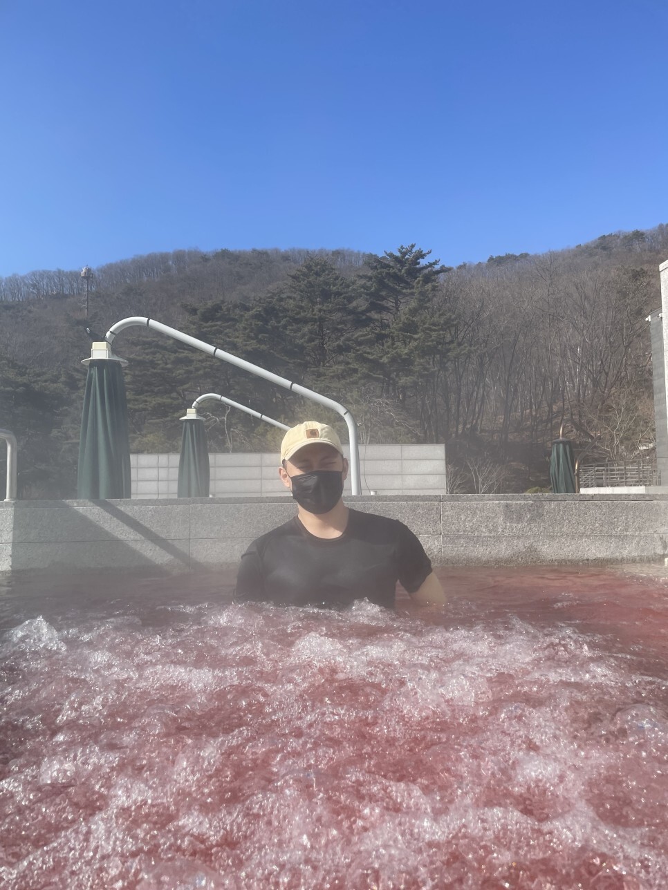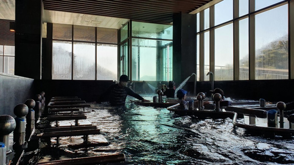 진짜 너무 춥고 가장 큰 풀장이 너무 멀리있어서 가장 가까이에 있는 머..이름 모르는 뜨거운 탕에 들어왔다... 보통 어르신들이 많이 들어가있는 그런 곳인데.. 너무 추웠다. 다행히 여기 탕 온도는 뜨거웠다.