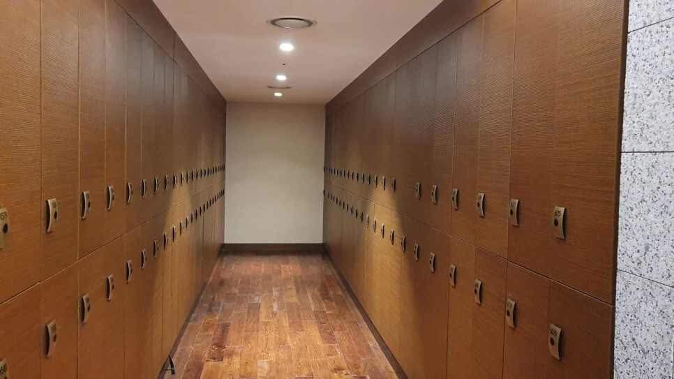 라커 입장.. 라커 굉장히 많다. 가구들이 다 나무 베이스라 고급스러운 느낌이 난다.