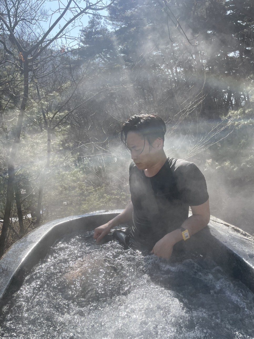온도차가 엄청 나기때문에 증기가 엄청 많이 나온다. 당연히 물도 엄청 따뜻했다.