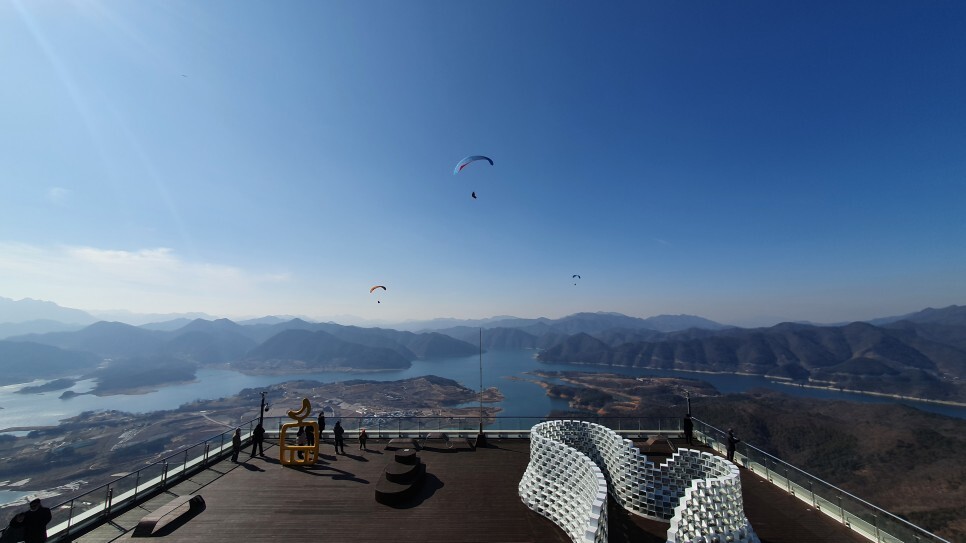 한겨울이라 추운데 글라이더가 몇개씩 날아다니고 있었다.