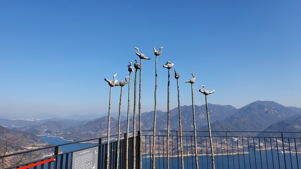 아주 멀리 남한강 자락이 보인다. 먼가 산들사이에 큰 강이흐르는데 운하같은 느낌이 난다.