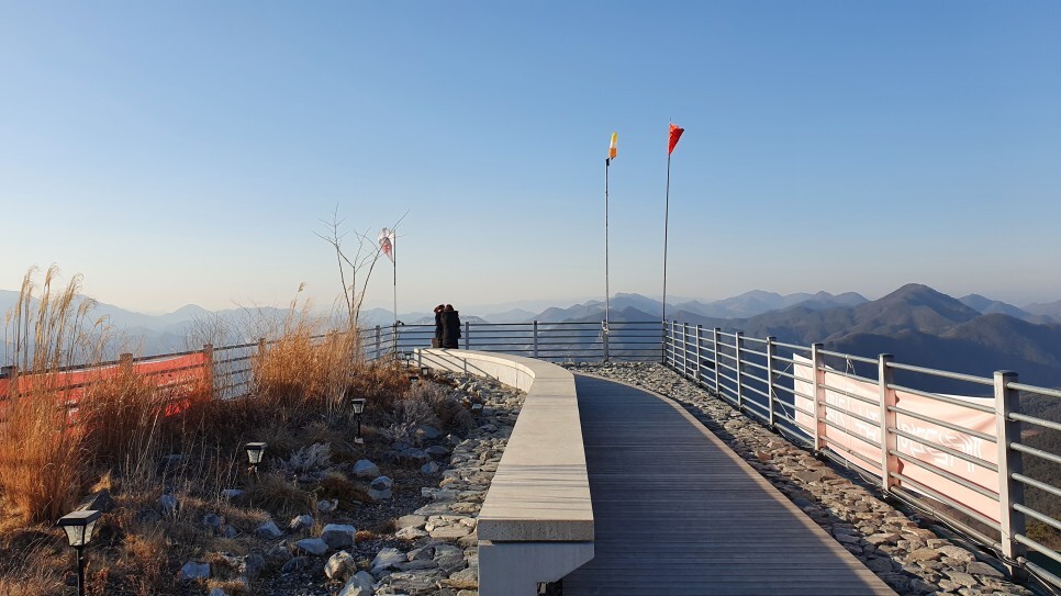 올라온 경사만큼 고도가 꽤나 높다. 앞에 거슬리는거 없이 단양군 일대가 다 내려다 보인다.