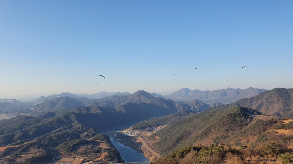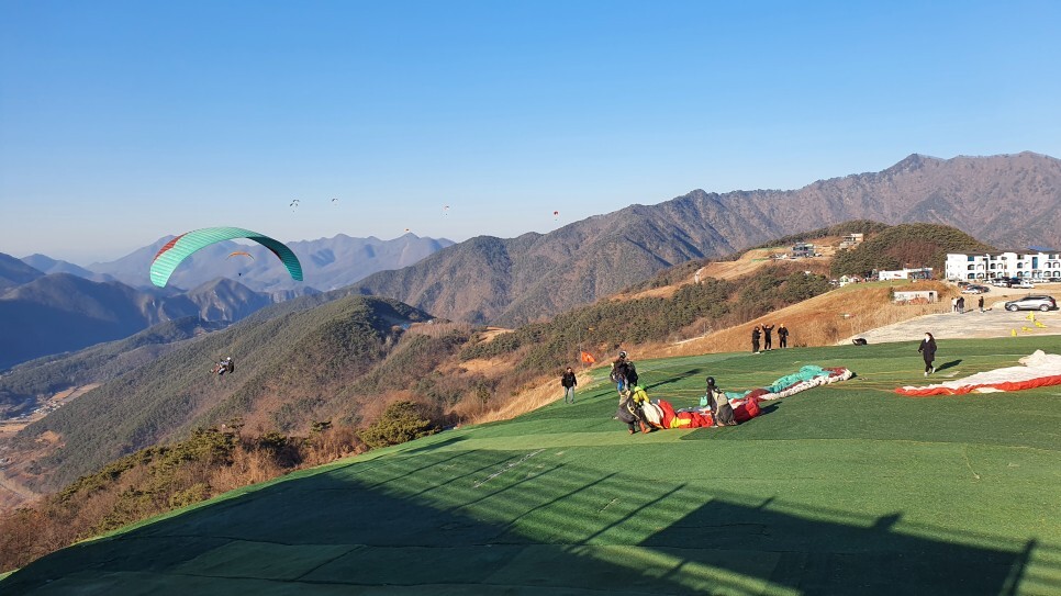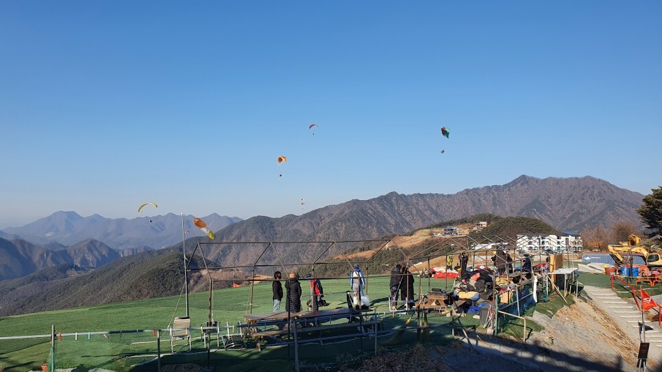 우측의 활공장..! 꽤나 많은사람들이 이날씨에 페러글라이딩을 즐기고 있었다.