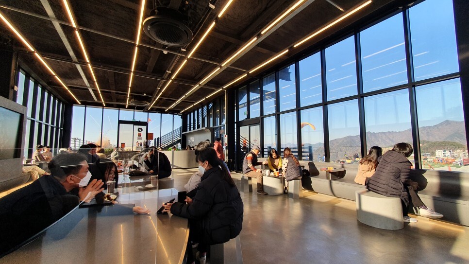요기가 카페랑 맞닿아있는 활공장이다. 실제로 저기서 페러글라이딩 활공을 하고 있어서 출발하는 모습을 바로 옆에서 볼 수 있다.