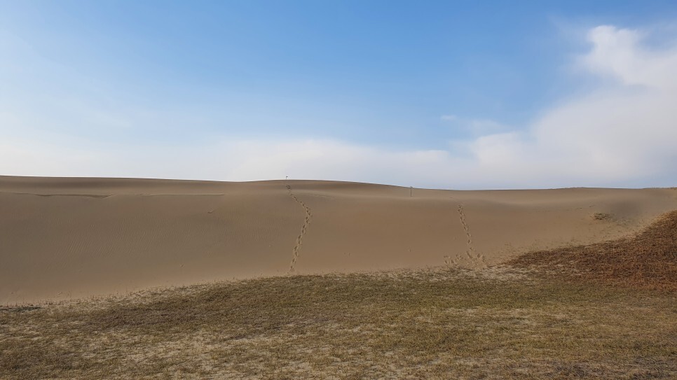 요기가 사진으로 봤던 해안 사구다! 해질녘이라서 그런지 사람이 많지가 았았다. 머 중국이나 몽골에서 봤던 거대한 사막은 아니었지만 사막과 비슷한.. 그럴듯한 지형이어서 난 좋았다 ㅎㅎ