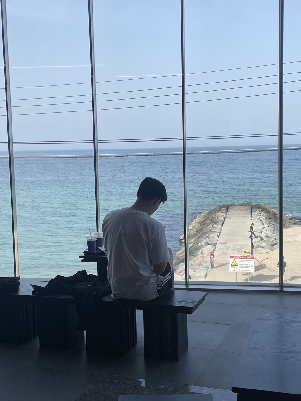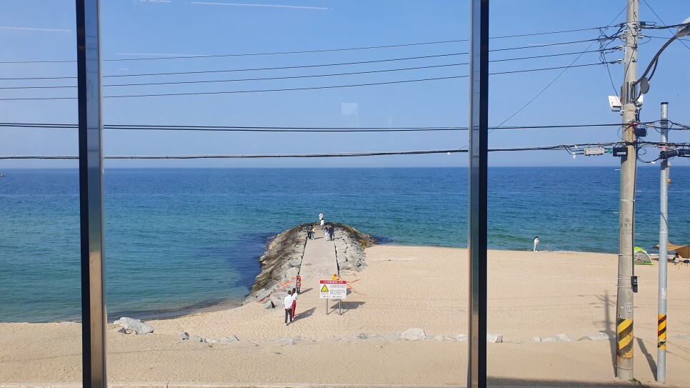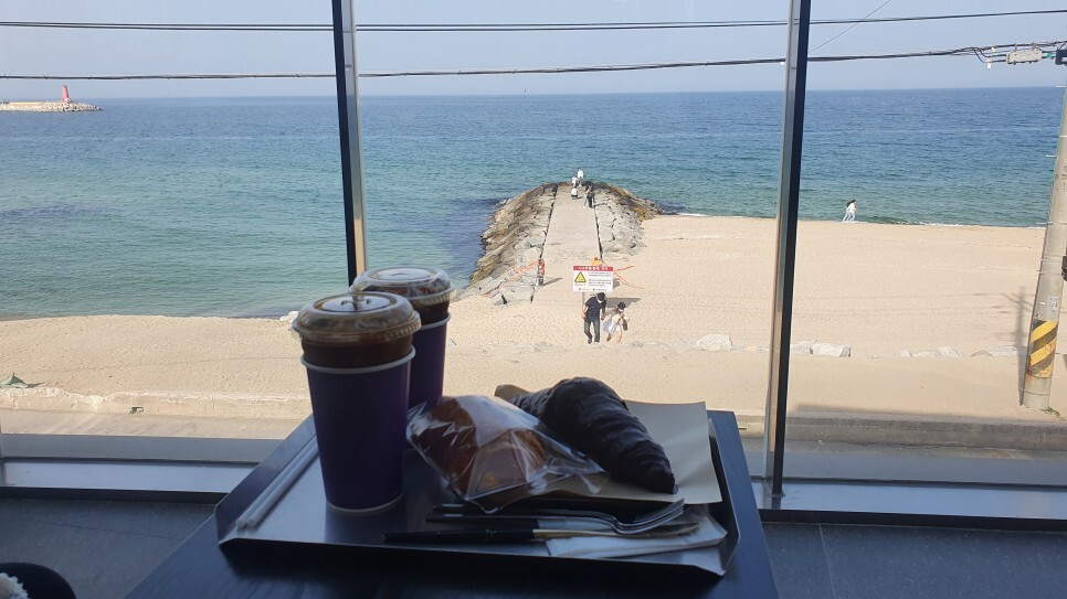 요 카페 특징은...! 앞에 바다가 보인다...! 동해라그런지 너무 이쁜바다