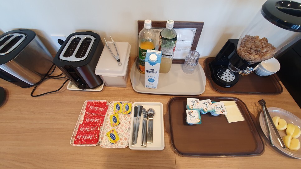 조식은 대충 이렇다. 토스트와 시리얼.. 그리고 간단한 과일? 별거 없는데 굉장히 풍성하게 잘 먹었다.