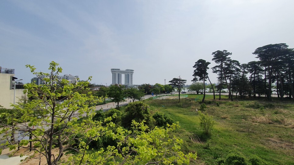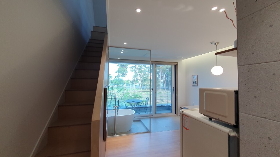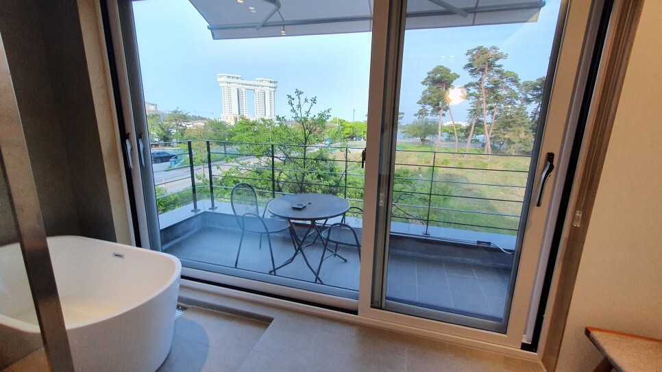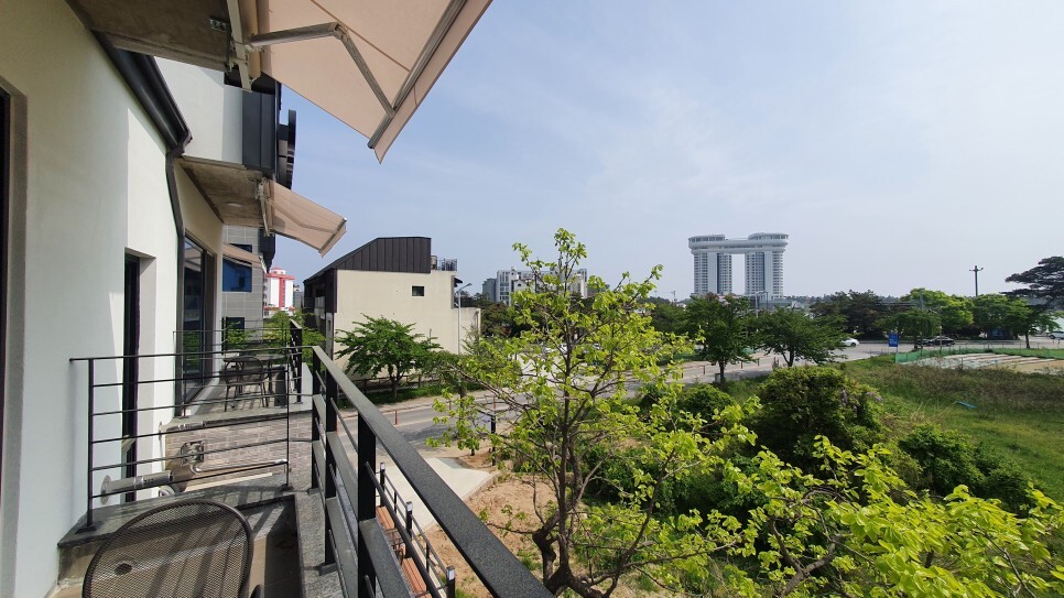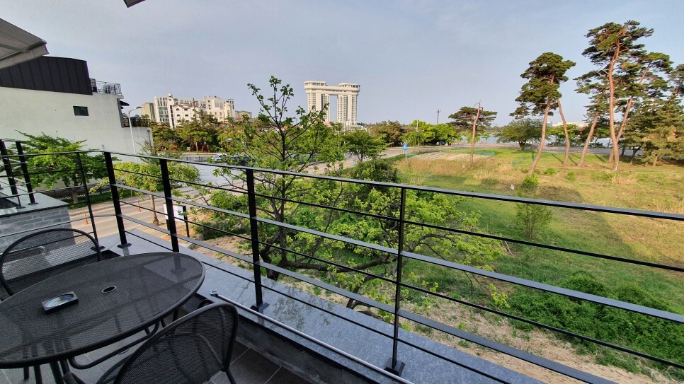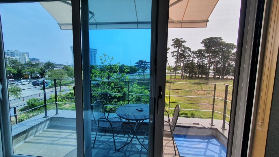 요기는 베란다! 요기서 바베큐파티를 할 수 있다. 멀리 경포호가 살짝 보인다.
