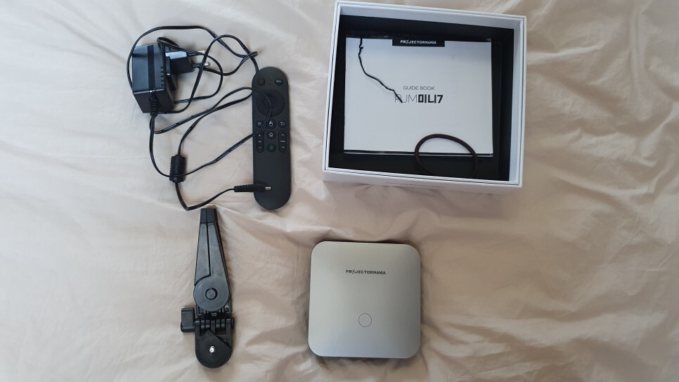 박스를 열면 빔프로젝터 구성품이 나온다.