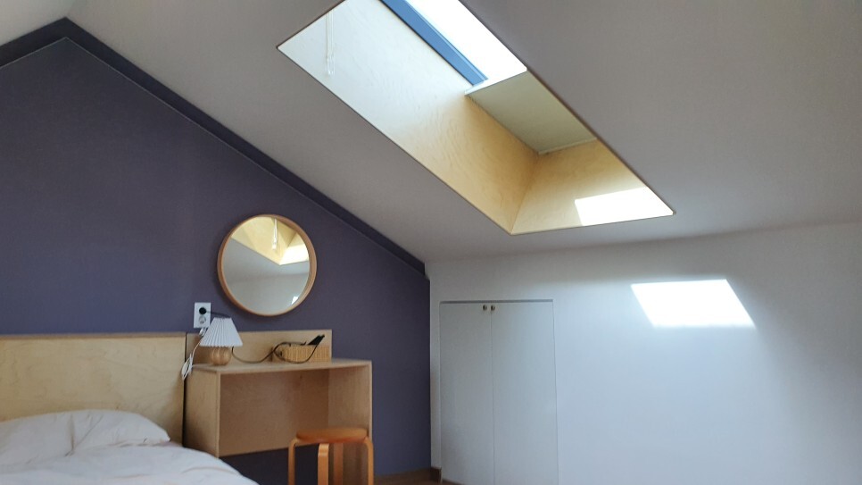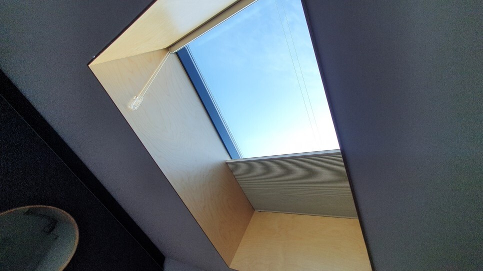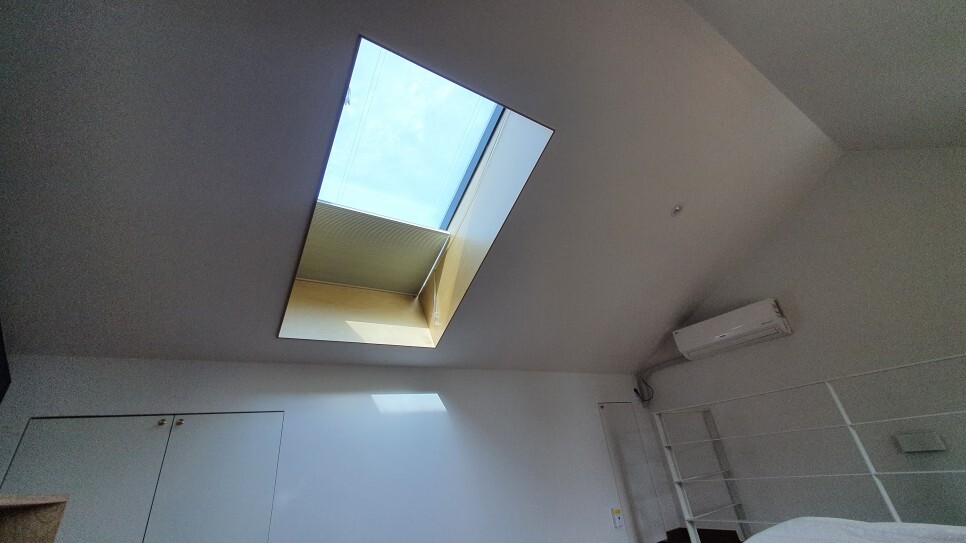 천장에는 블라인드도 달려있어서 빛이 싫을 경우 닫아놓을 수도 있다.