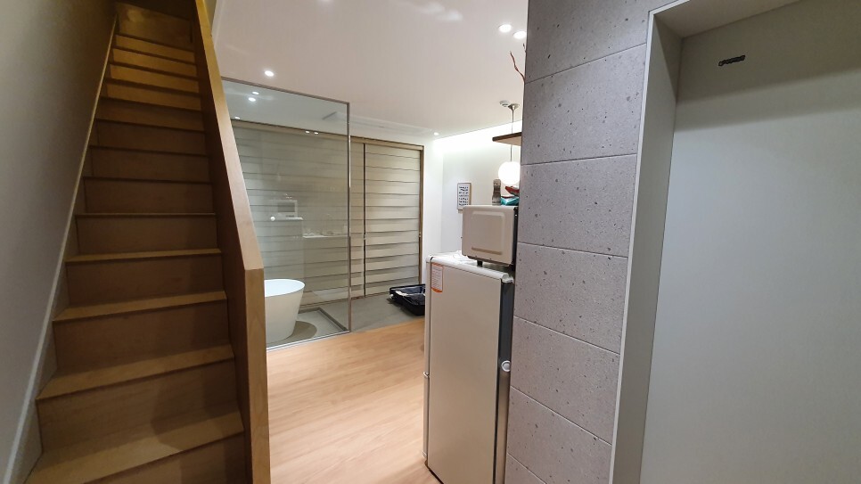 입장하고 깜놀.. 9만원짜린데 왤케 깔끔해??.... 요즘 물가가 많이 올라서 한 7~9만원해도 이상한곳밖에 없는데 가뭄에 단비같은 숙소였다.