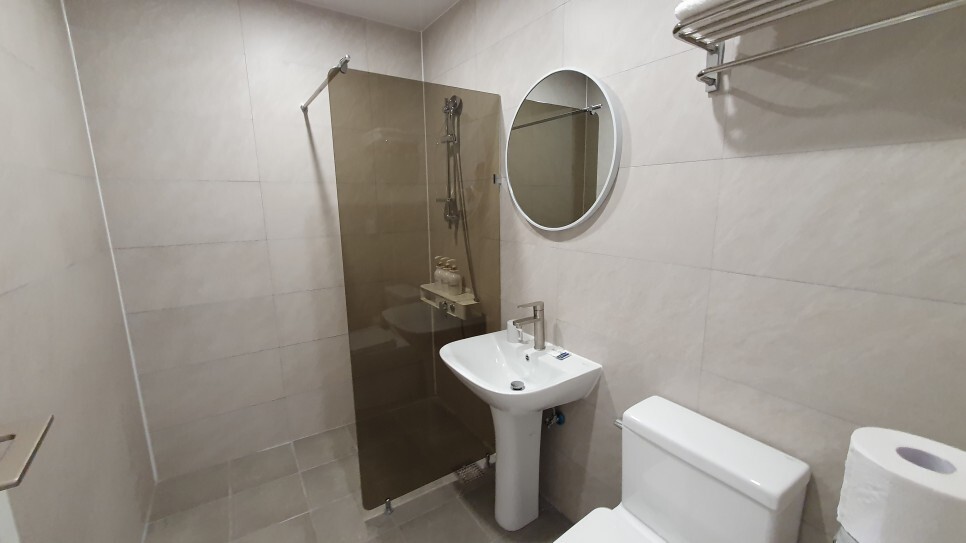화장실 사이즈도 딱이고 일단 실리콘이 모두 하얀게 좋았다. 물론 샤워기 헤드랑 이런 곳들도 상처 없이 광이 반질반질 했다.