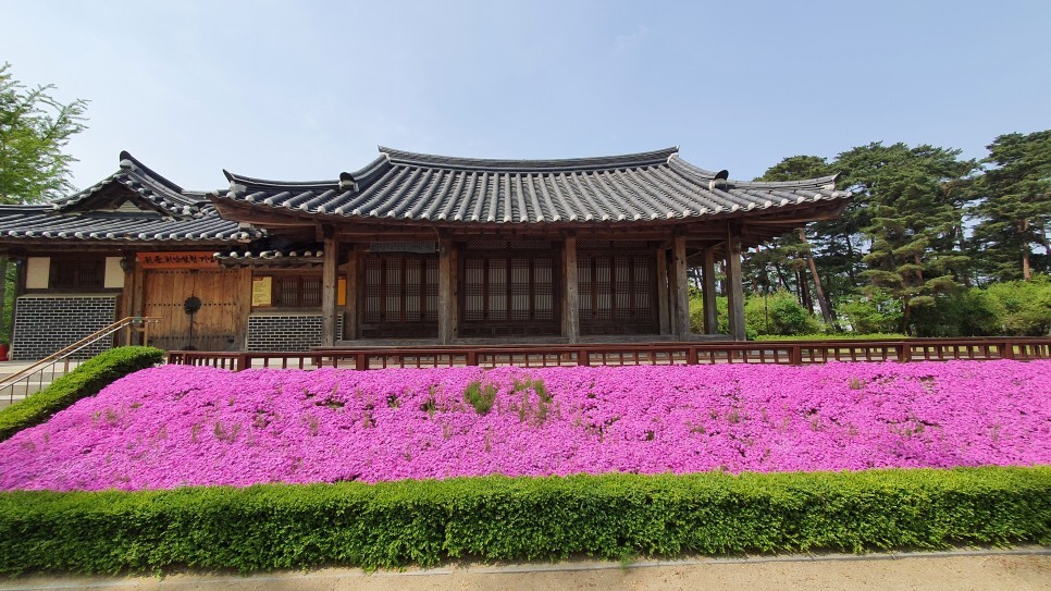 요기가 허균 선생의 생가라고 한다. 저 자주색 꽃들은 어떤 의미를 가지고 있을까