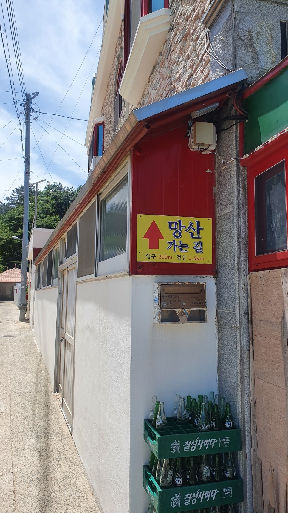 대포항 앞에 건물들을 보면 이렇게 망산 가는길 표지가 붙어져있는 건물이 있다. 이 길을 따라가면 된다.