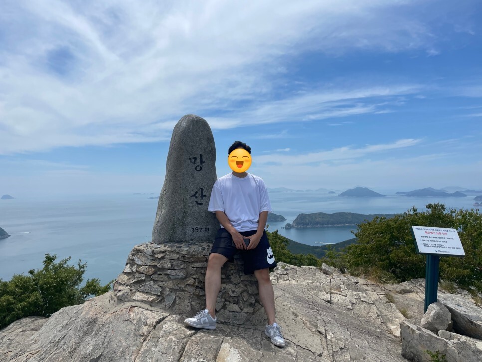 망산 정산석! 387미터! 요기는 정상석 뒤로 바다가 쫙 보여서 인증사진 찍기 좋다.