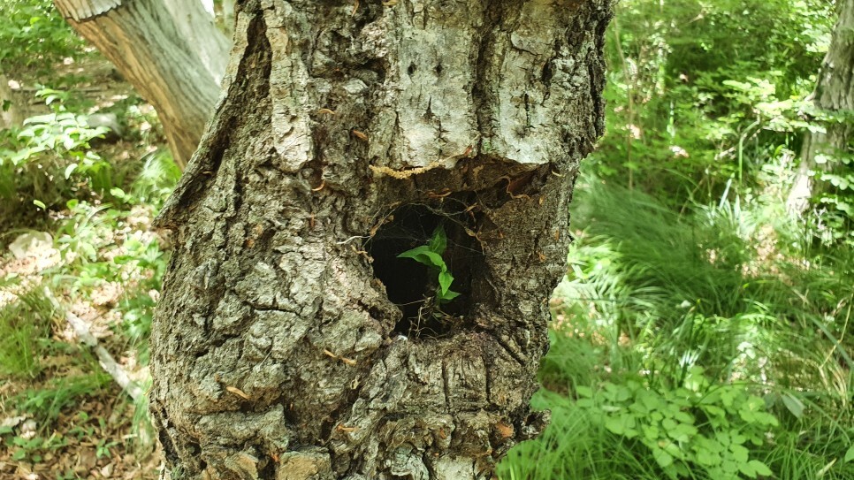 나무 옹이안에 자라나는 새싹..! 신기해!