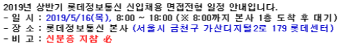 | [전역장교/면접준비 시작] #6 2019년 상반기 롯데정보통신 면접 최종 합격 후기 (0) | 2020.04.21 |