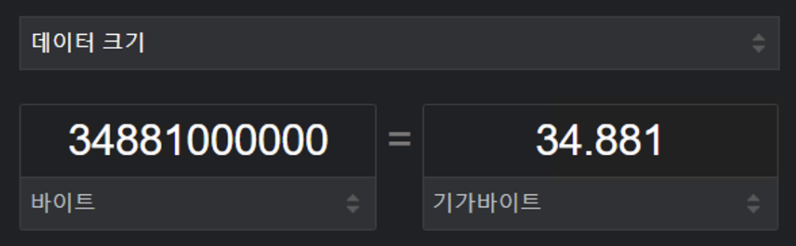 허걱.. 바이트 단위가 바로 GB로 환산되진 않았지만 대략… 내 서버 디스크가 40GB 짜리니까… 앞에 34면 대략 34기가가 아닐까 생각이 들었다.